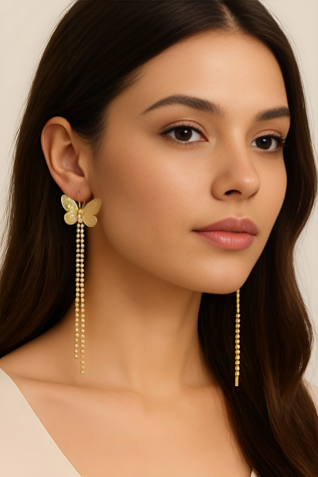 Elevate your style with these breathtaking long earrings for women! Featuring intricate, airy butterfly earrings in a rich golden hue, these dangle earrings are designed to make a statement