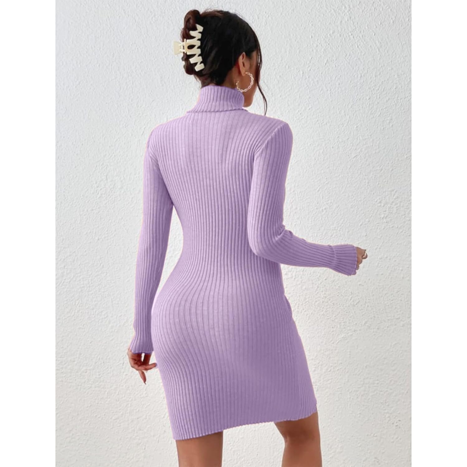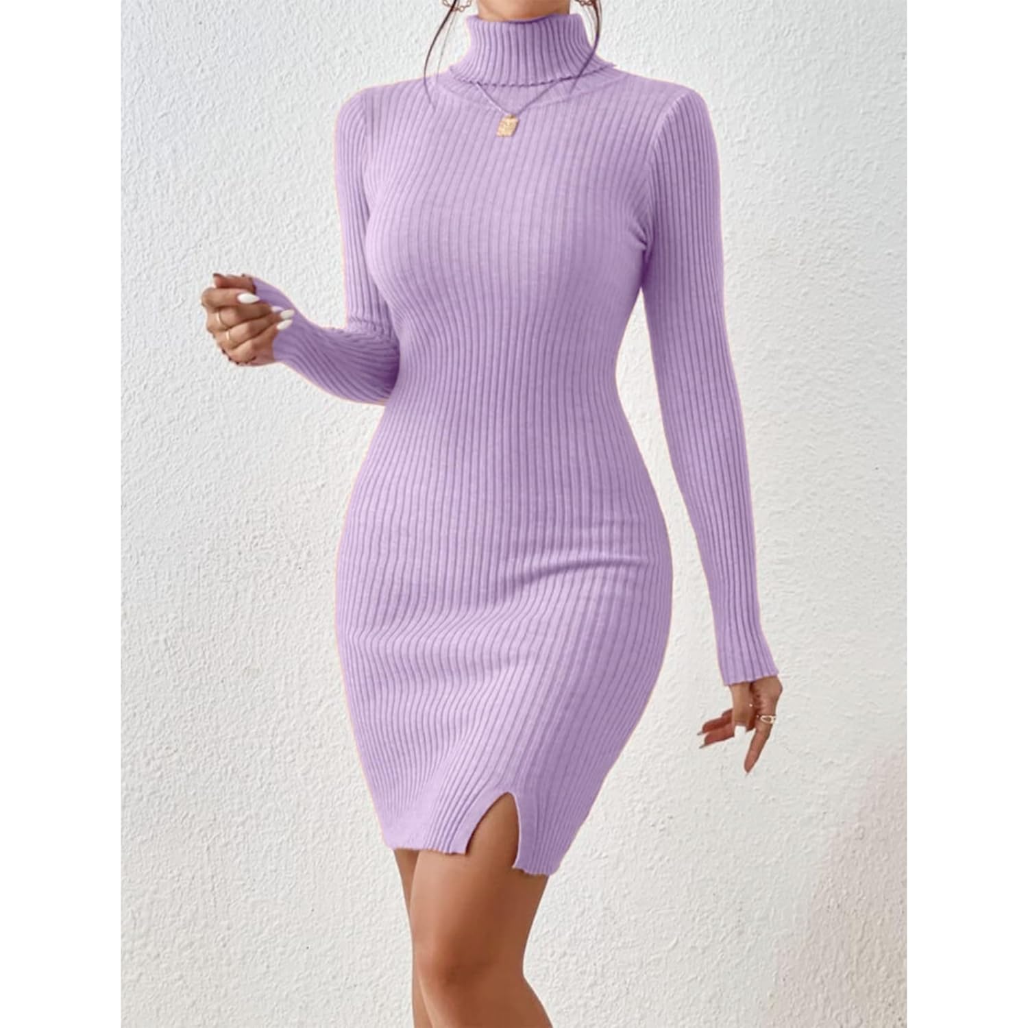 GLARE & BLAIR Solid Turtle Neck Regular Fit Casual Ribbed Knit Long Sleeve Bodycon Dress for Women