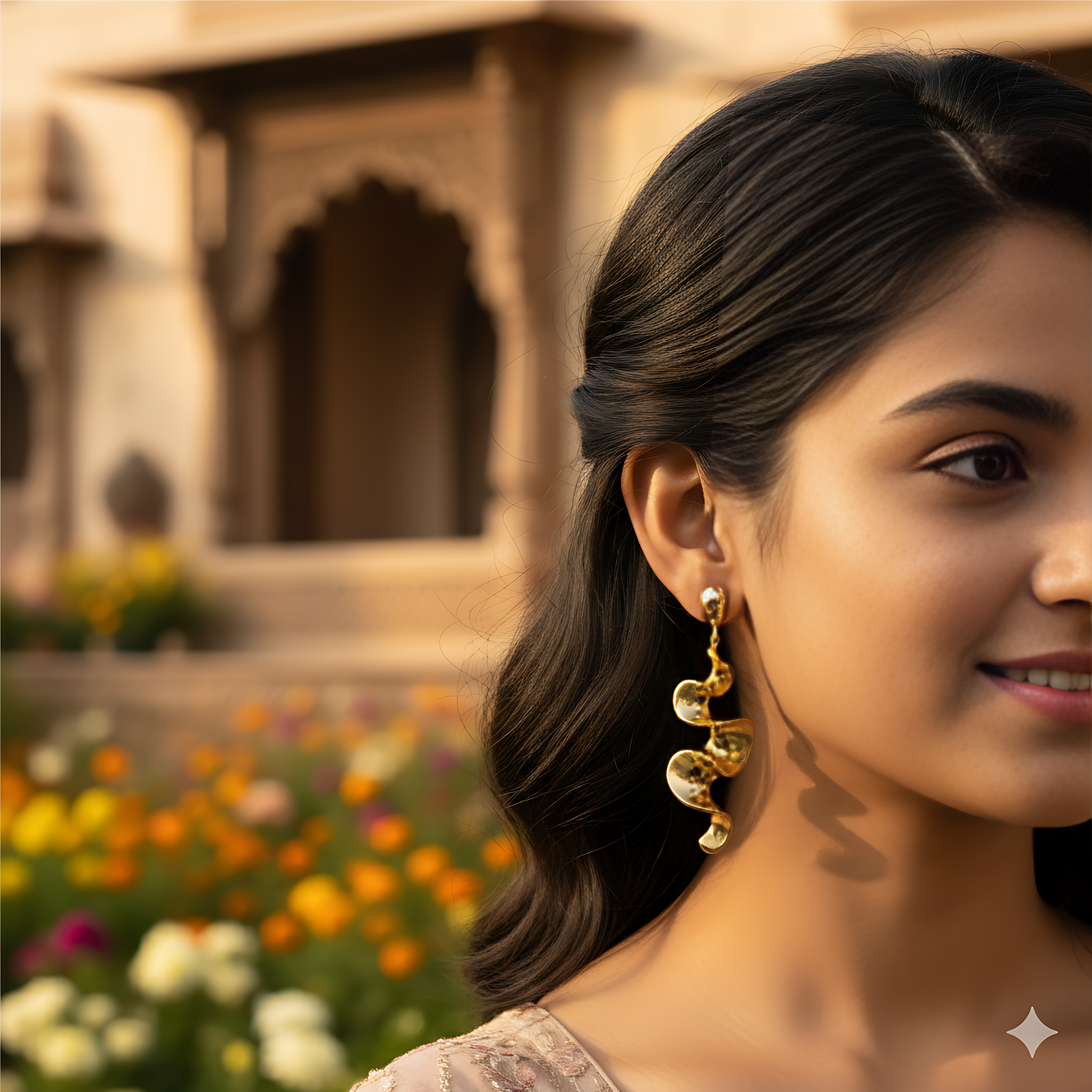 Gold Wavy Earrings | Modern Statement Jewelry | Muskan Allure