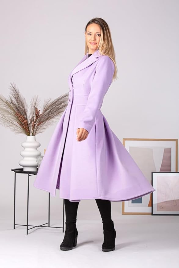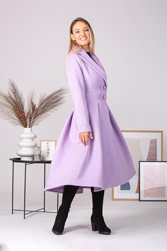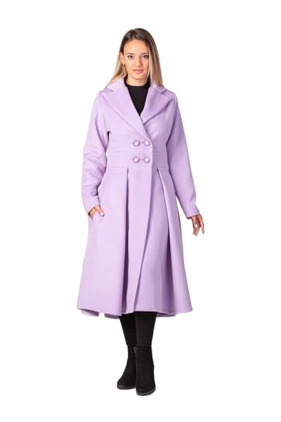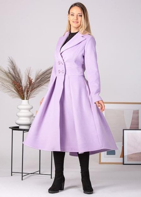 Lavender Double Breasted Winter Overcoat for Women | Long Full Sleeve Dress Coat | Trending 2025