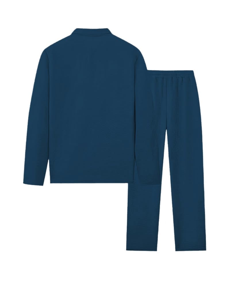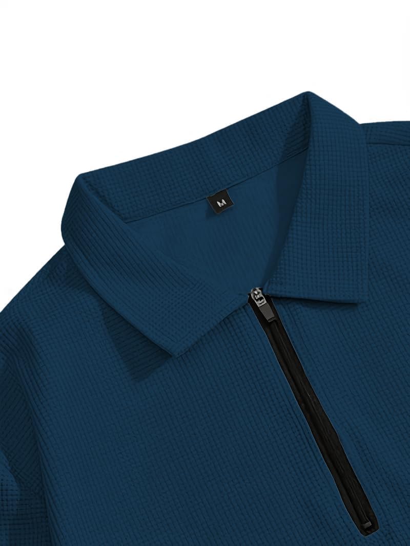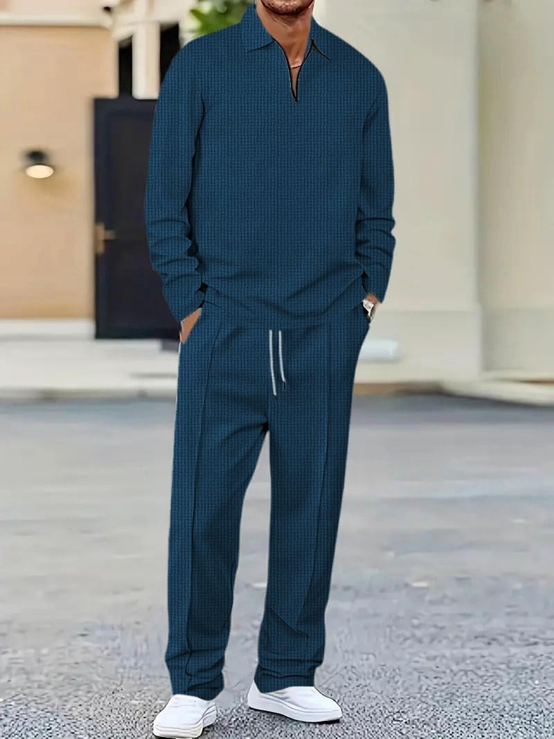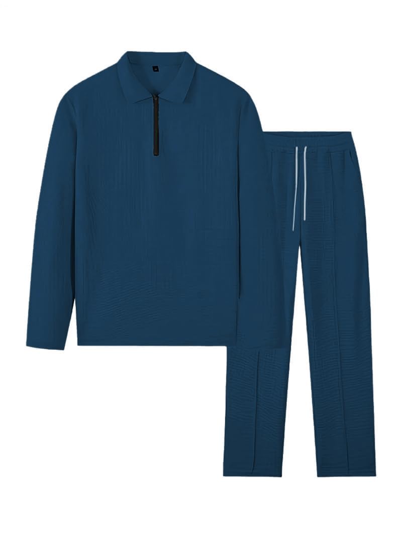 Men’s Waffle-Check Co-Ord Set | Self-Textured Collar Top | Drawstring Jogger Pants