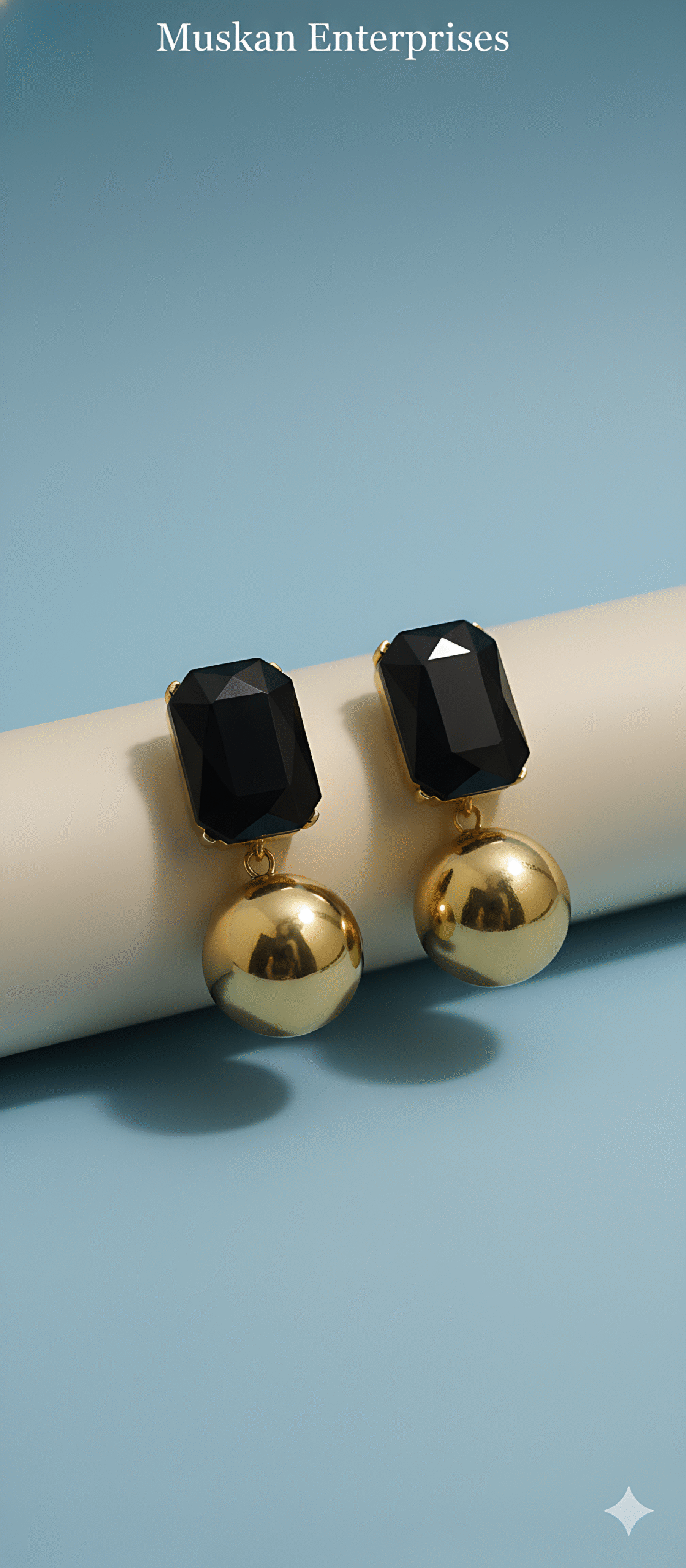 Elevate your look with these luxurious earrings, featuring rich red emerald-cut stones in a gold-tone frame and polished gold sphere drops. Perfect for weddings, parties, and festive occasions, this elegant jewelry blends modern design and classic charm, offering all-day comfort and long-lasting shine for every style-conscious woman.