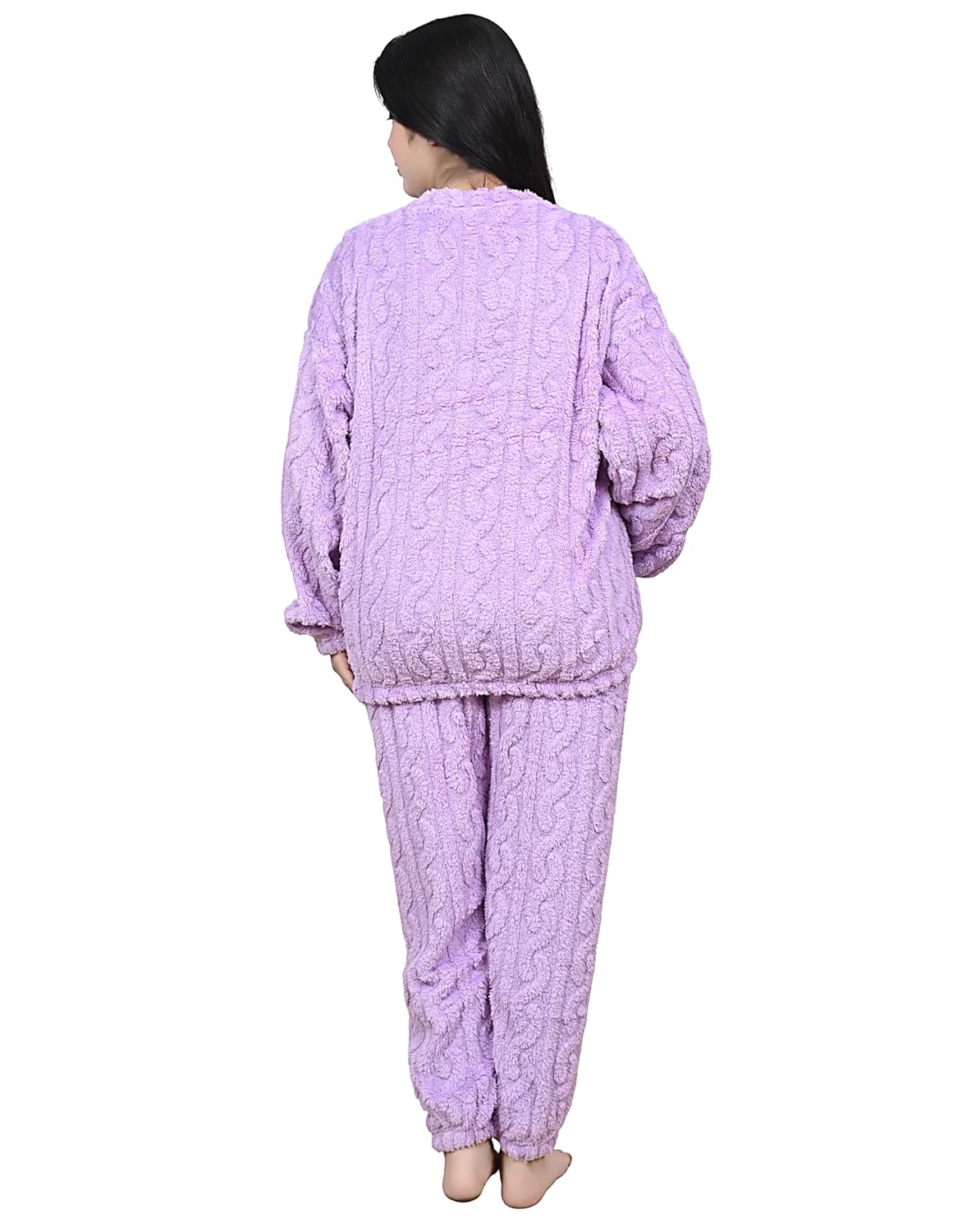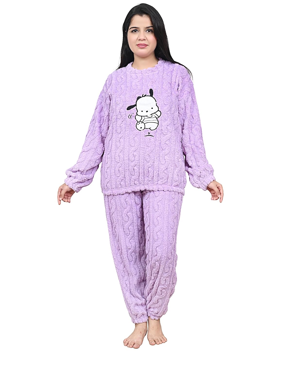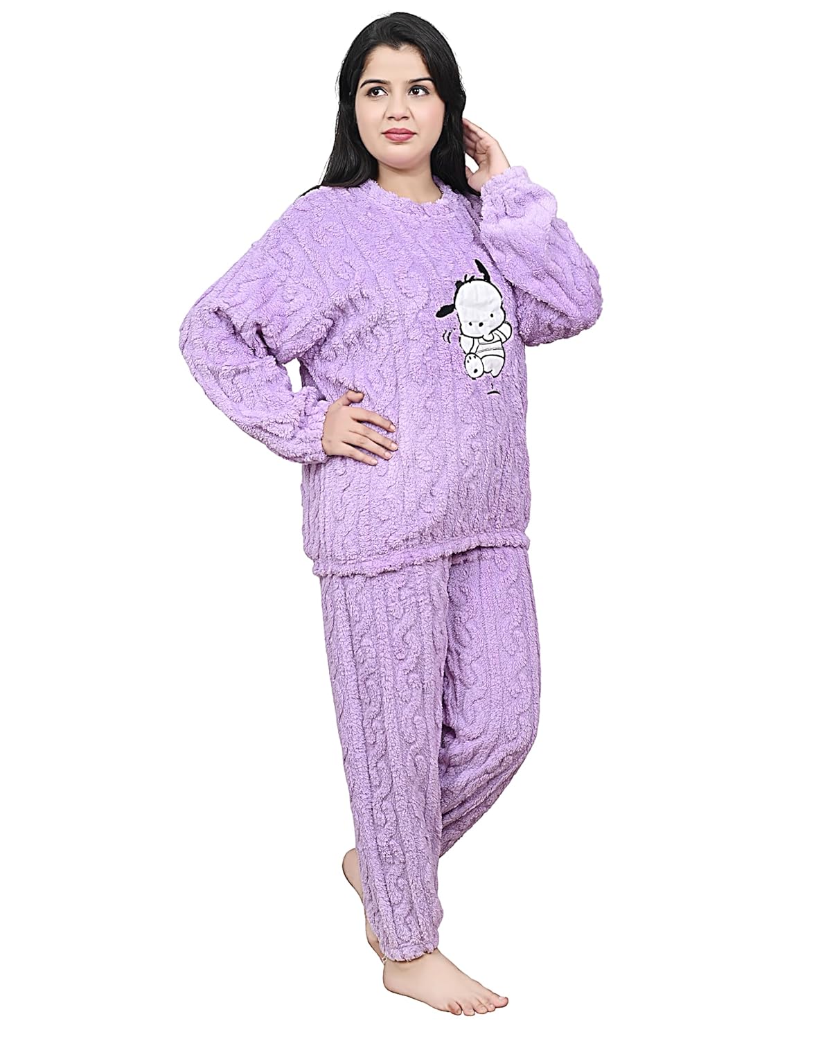 Winter Fleece Pajama Set, Two-Piece Loungewear with Character Print, Warm Night Suit for Women